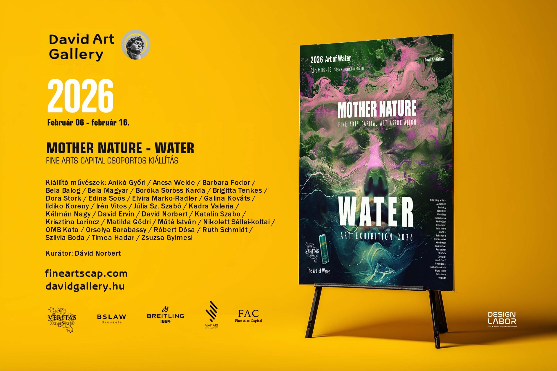 A Mother Nature – Water című kiállítás ezt az ősi és örök jelentést járja körül a kortárs képzőművészet eszközeivel. A művek a víz sokféle arcát mutatják meg: tükröződéseit és mélységeit, felszíni nyugalmát és belső erejét. A művészek érzékeny reflexiói arra hívják fel a figyelmet, hogy a víz nem csupán fizikai létezésünk alapja, hanem érzelmi és szellemi tapasztalataink egyik legfontosabb hordozója is.